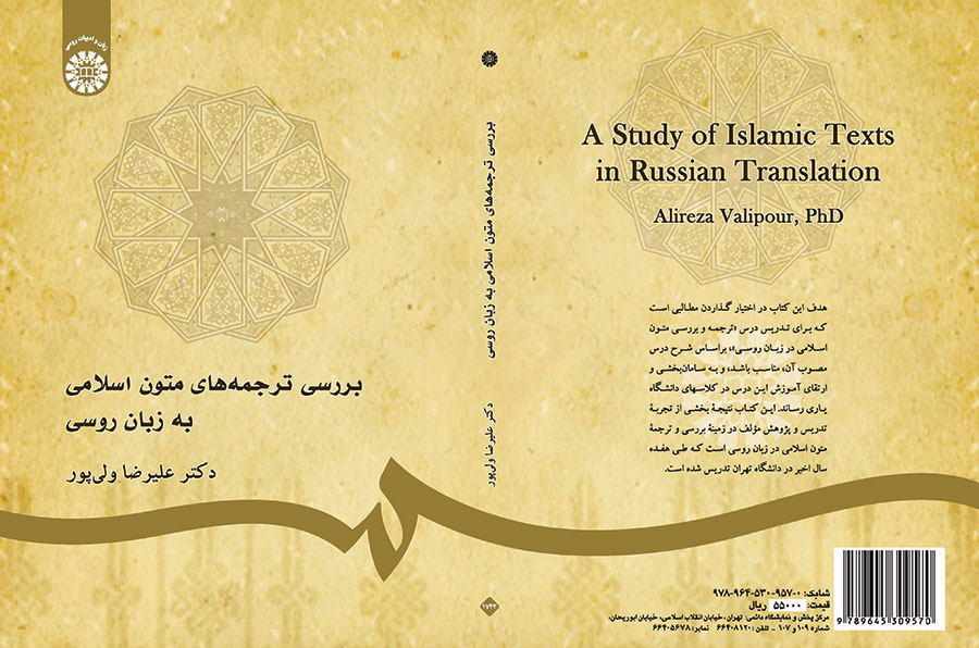 هدف این کتاب در اختیار گذاردن مطالبی است که برای تدریس درس «ترجمه و بررسی متون اسلامی در زبان روسی»، براساس شرح درس مصوب آن، مناسب باشد، و به سامانبخشی و ارتقای آموزش این درس در کلاسهای دانشگاه یاری رساند. این کتاب نتیجه بخشی از تجربه تدریس و پژوهش مؤلف در زمینه بررسی و ترجمه متون اسلامی در زبان روسی است که طی هفده سال اخیر در دانشگاه تهران تدریس شده است.