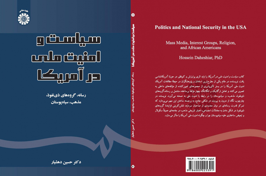 کتاب سیاست و امنیت ملی در امریکا را باید اثری پُر ارزش و کمنظیر در حوزه امریکاشناسی یافت. نویسنده، در مقام یکی از مطرحترین استادان و پژوهشگران در حیطه مطالعات امریکا، امنیت ملی امریکا را در بستر تأثیرپذیری از مجموعهای تعیینکننده از مؤلفههای داخلی به تصویر میکشد و تعامل ارگانیک و تنگاتنگ چهار مؤلفه برساخته، مشتمل بر رسانه، گروههای ذینفوذ، مذهب، و سیاهپوستان را در رابطه با امنیت ملی به صحنه میآورد. نویسنده در چارچوب نگاه از درون به بیرون، در شکلی جامع، به برجستهساختن این مهم میپردازد که تمرکز قدرت رسانهای در میان معدودی از صاحبان سرمایه، نقشآفرینی فزاینده گروههای ذینفوذ در شکلدادن به معادلات اجتماعی، اعتبار تاریخی مذهب در جامعهای عمیقاً سکولار و تبعیض ساختاری علیه سیاهپوستان چرا و چگونه امنیت ملی امریکا را متأثر میسازد.
